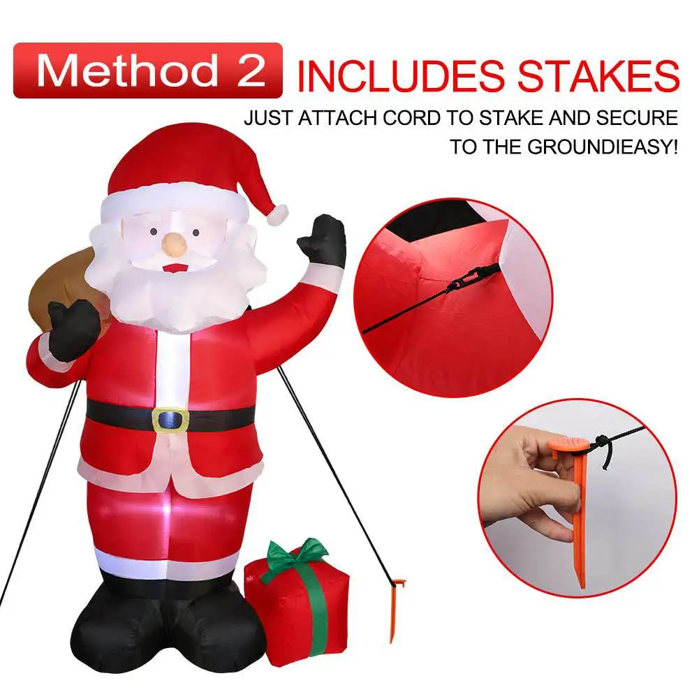 Упаковочный лист: 1 шт Надувные Санта-Клаус/снеговик Размер: 5 футов/59 дюймов * 37,4 дюйма (150 см * 95 см) Материал: полиэстер Применение: рождественское внутреннее наружное украшение
