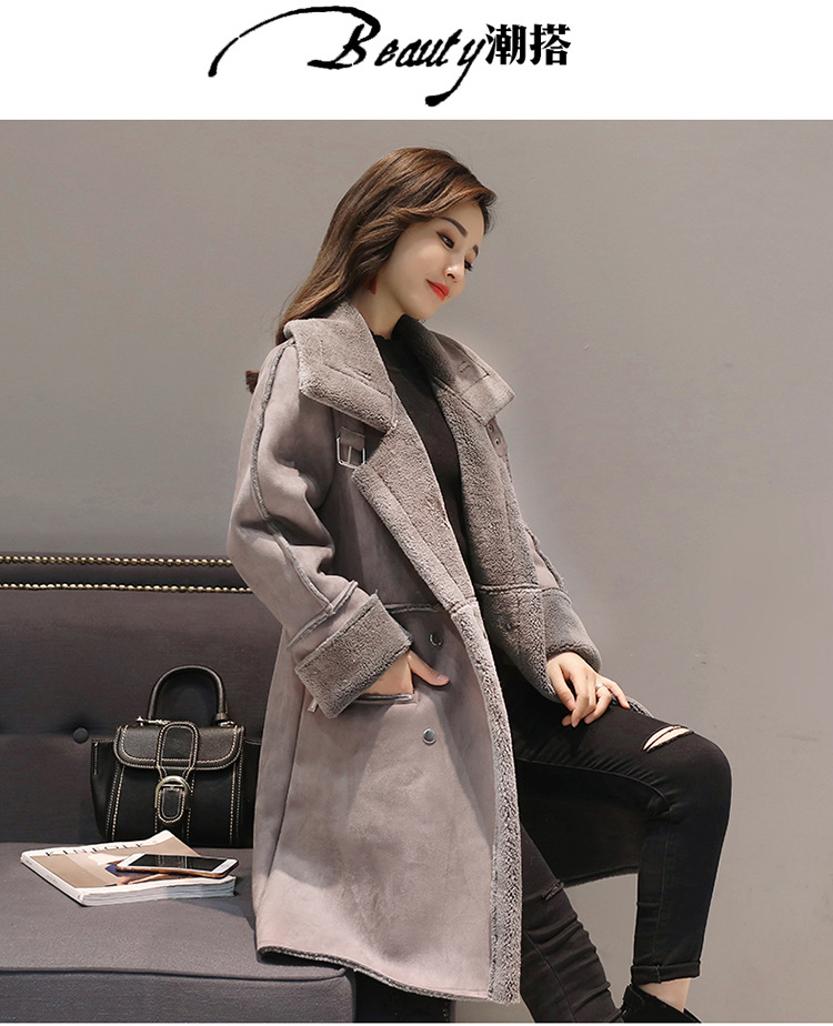 Новинка 2018 зимнее корейское женское длинное толстое шерстяное пальто из овечьей шерсти двубортное хлопковое пальто с оленем