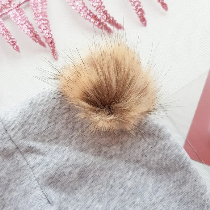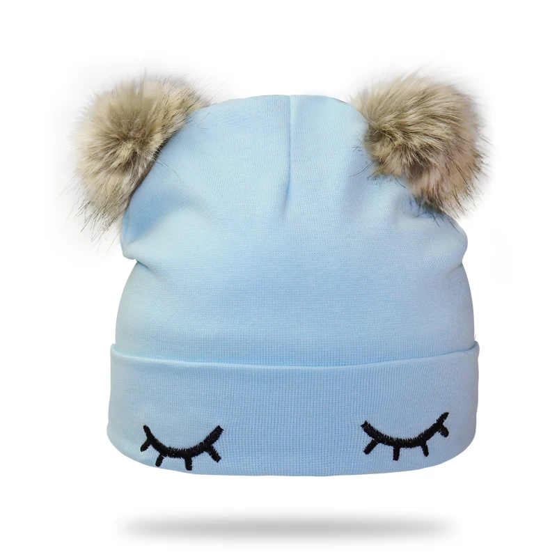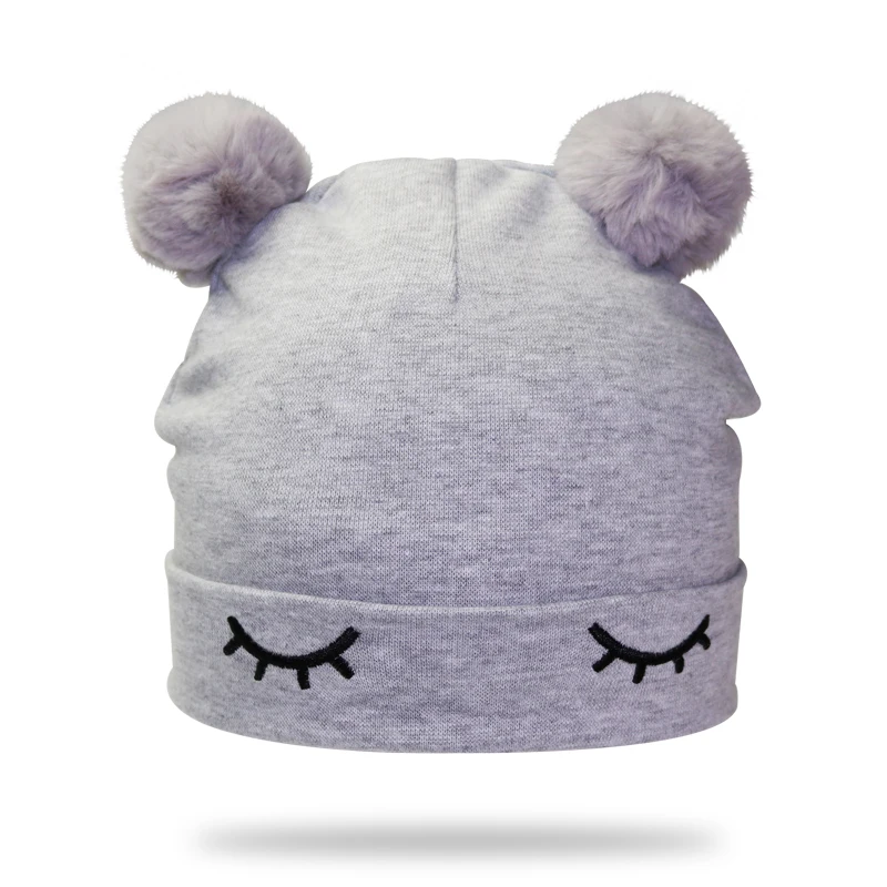 Зимняя хлопковая шапка с двойным помпоном для девочек с вышивкой глаз, шапка для малышей