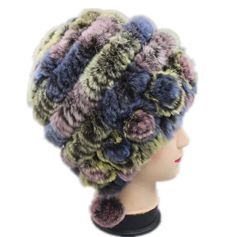 Зимняя шапка из натурального меха, женская зимняя меховая шапка, русская меховая шапка из натурального меха кролика Рекс, женская шапка, меховая вязаная теплая H151