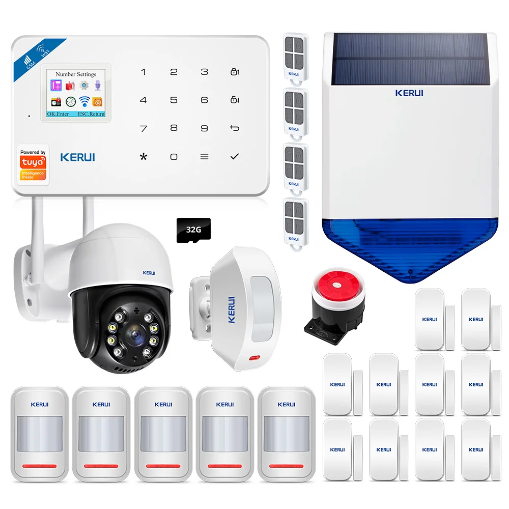 Tuya KERUI W18 Wi-Fi GSM SMS домашняя охранная сигнализация система Занавес Датчик движения Беспроводная вспышка Сирена внутренняя камера IP
