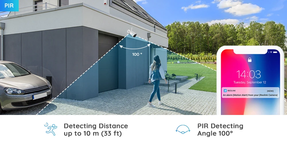 С широким углом обнаружения PIR 100 ° и высокочувствительным датчиком движения PIR, эта ip-камера фиксирует все движения человека практически без ложных сигналов тревоги.
