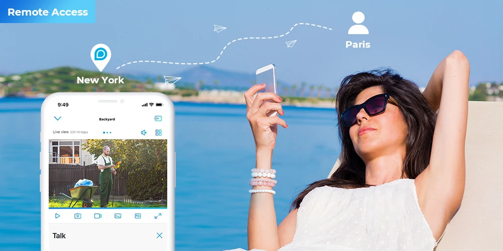 Независимо от того, где вы находитесь, вы можете получить удаленный доступ к камере, чтобы увидеть прямую трансляцию и оставаться на связи.
