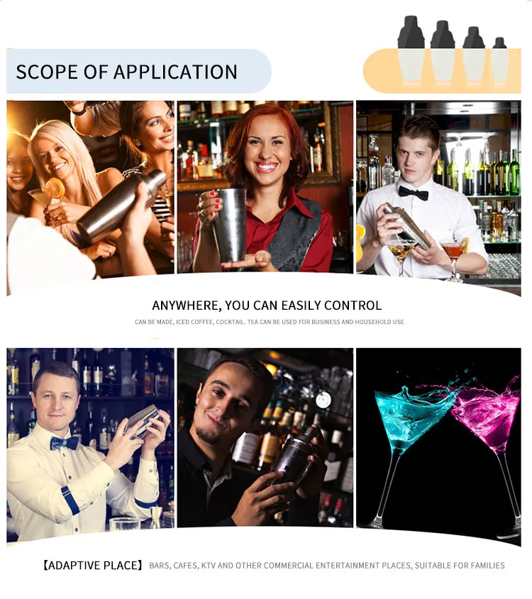 Этот шейкер используется для бара, отеля, дома, вечерние, развлекательные, личные напитки и т. д.