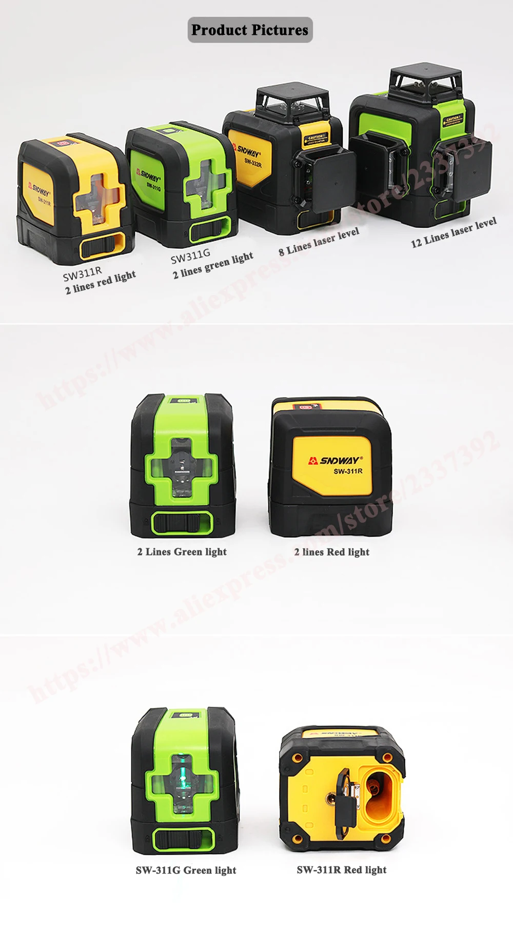 Лазер Sndway уровень самонивелирующийся (4 градуса) зеленый/красный луч 2 поперечные линии Горизонтальные и вертикальные поворотные высокой точности Nivel