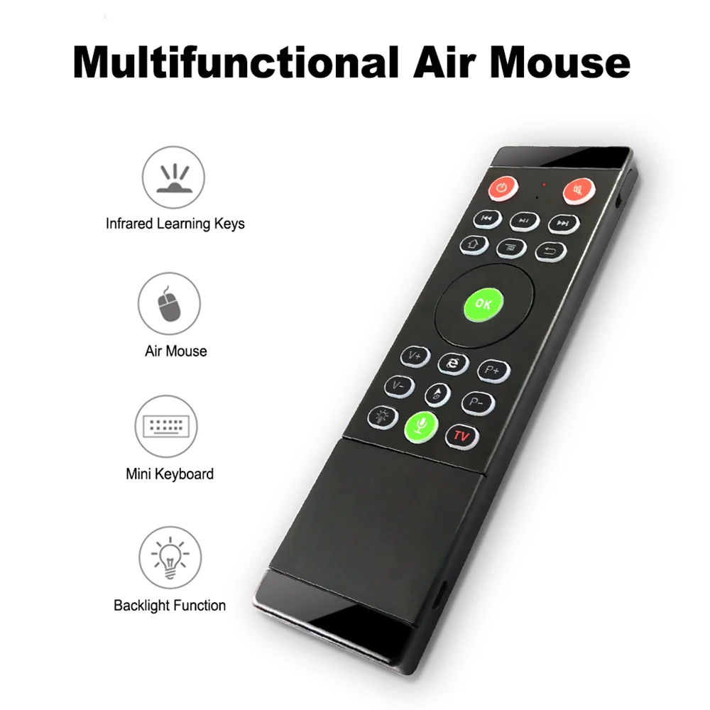 * 43 клавиши клавиатуры и сенсорной панели:Противоположная сторона пульта дистанционного управления-это мини беспроводная клавиатура с 43 клавишами для ввода текста, которая имеет тачпад для управления.