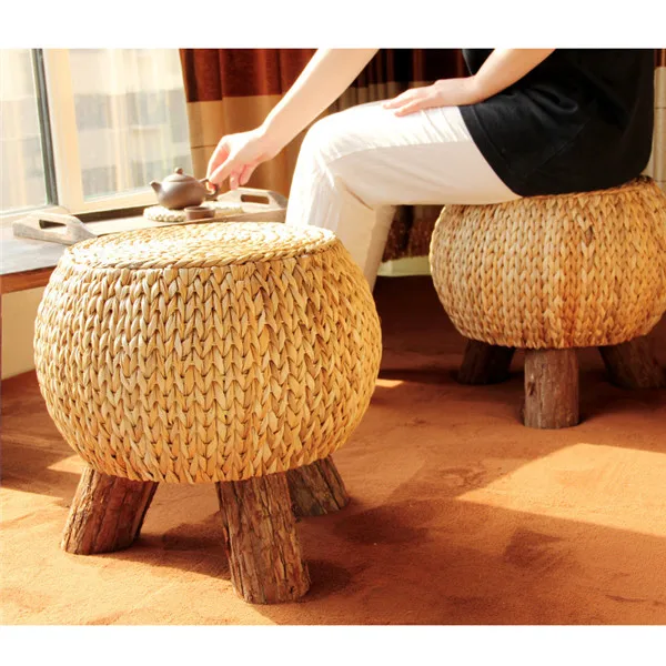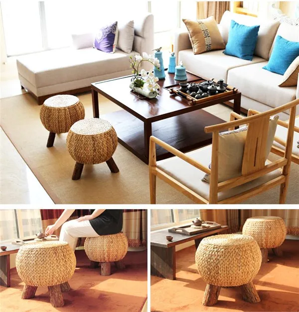 Имя:Табурет с круглыми ногами Сменная обувь Османская деревянная подставка для ног с 3 ножками Ротанговая повязка Табурет для макияжа Прихожая Гостиная Плетеный пуф