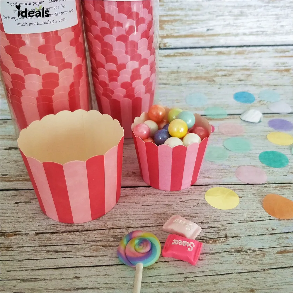 Темно-светильник, розовая полоска, бумажные чашки для кекса/лакомства, мини-цветная бумага для кекса, лайнер для выпечки, коробка для кекса, чехол для чашки