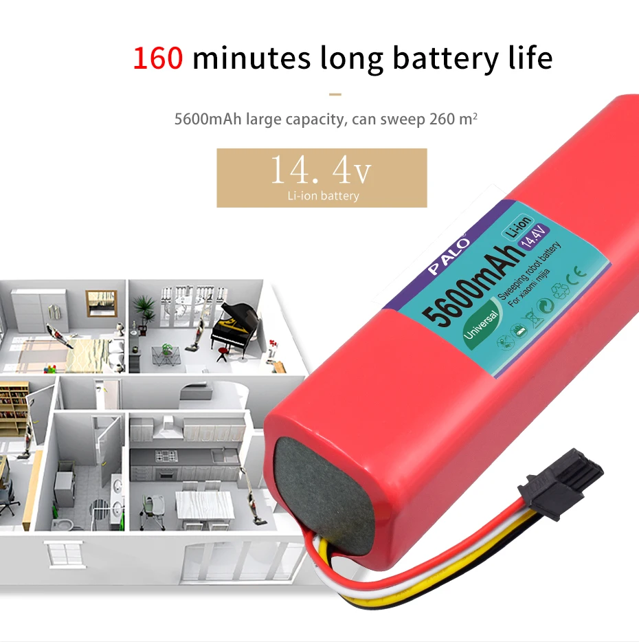 Аккумуляторная батарея PALO для робота-пылесоса Xiaomi roborock S50 S51, 14,4 В, 5600 мАч