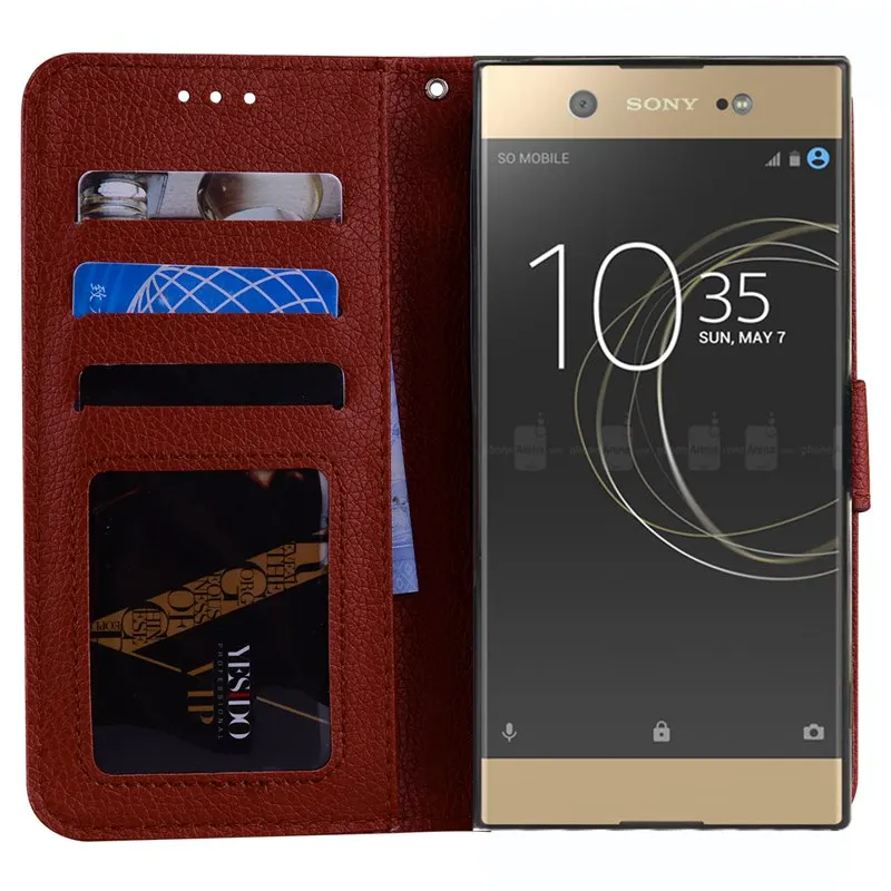 Роскошный чехол-кошелек из искусственной кожи личи для Sony Xperia Z3 Z5 Mini M2 M4 Aqua M5 X XA XZ E5 L1 XA1 Ultra XZ2