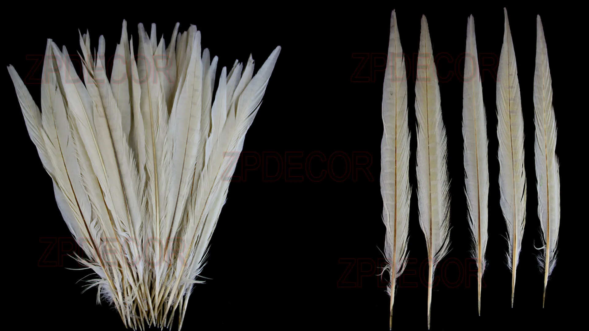 Перо фазана с кольцом Размер: 30-35 см/12-14 дюймов Цвет: белый рис