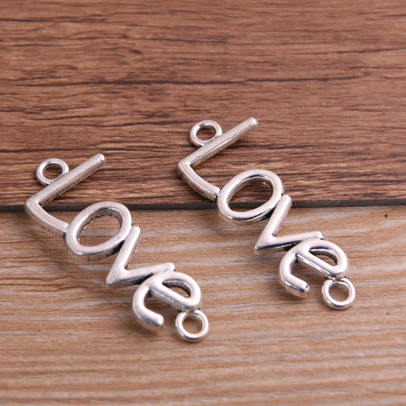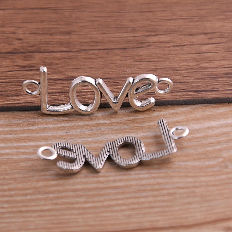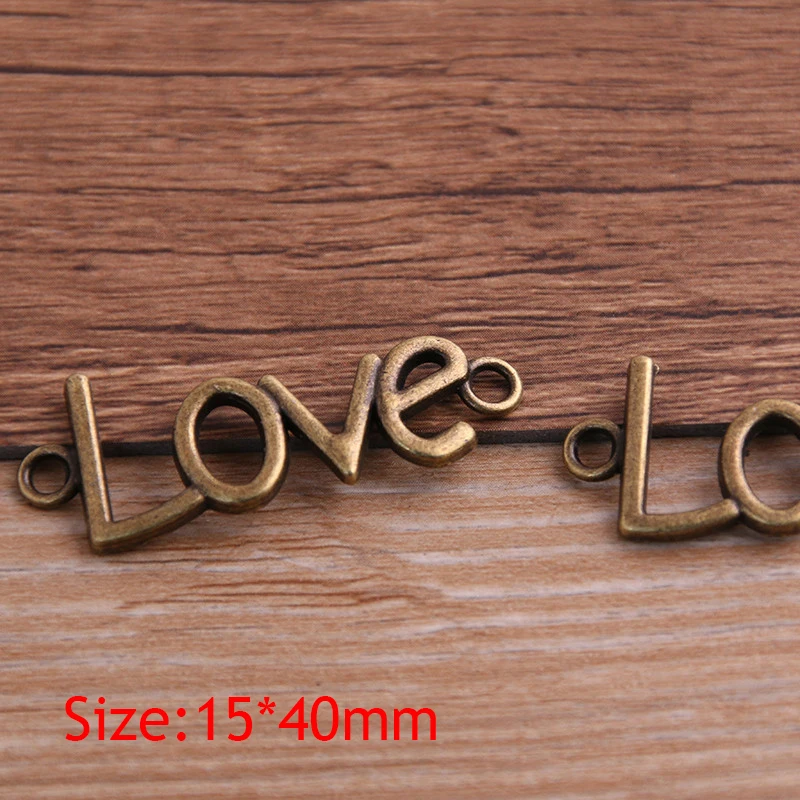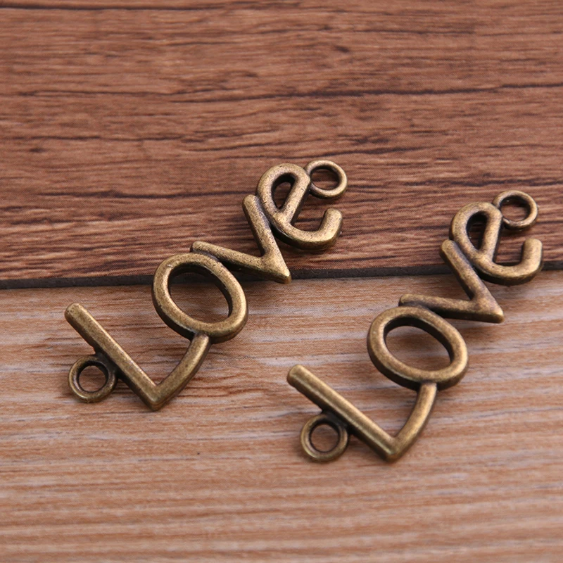 PULCHRITUDE 10 шт 15*40 мм два цвета металлический сплав буквы "любовь" Ювелирные соединители ювелирный браслет