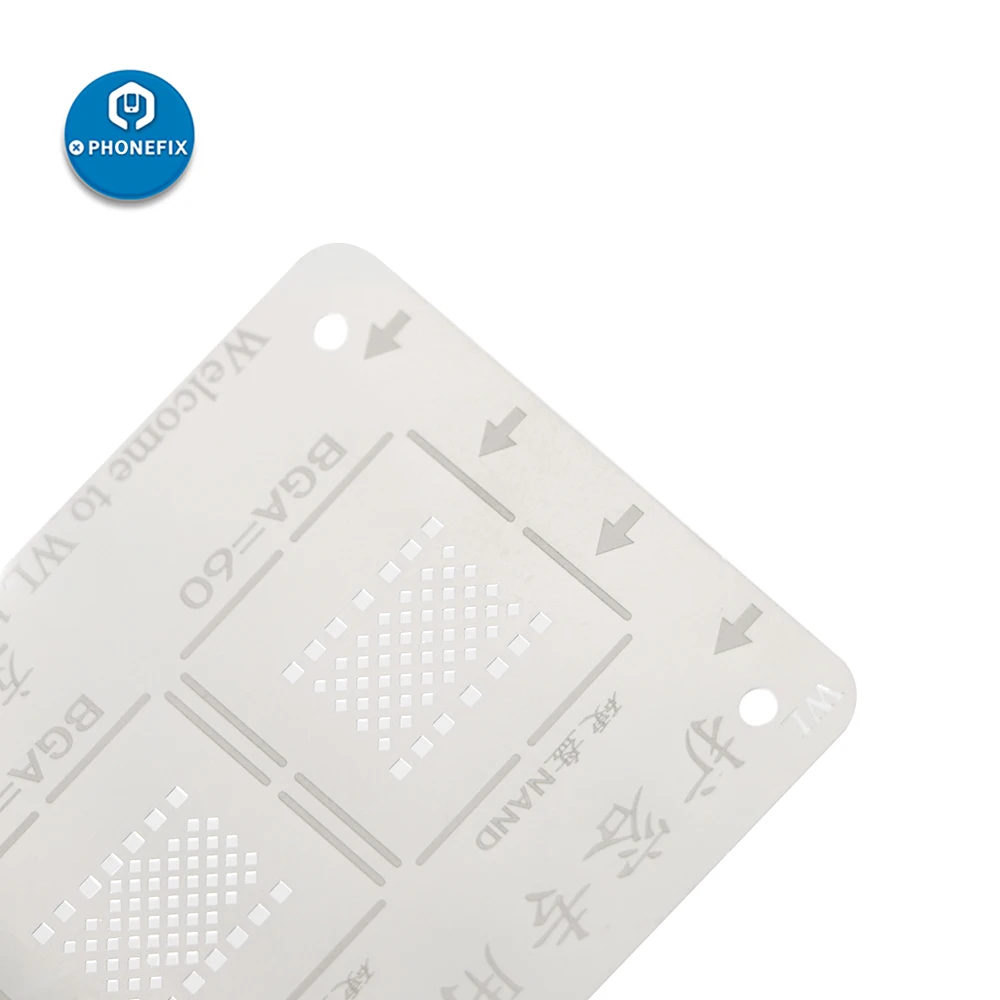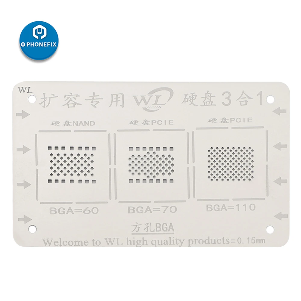 WL Iphone NAND Flash BGA reballing reball stencil, iphone 5/5c/5s/6/6p/6s/6sp/7/7p/ 8 8p X XS MAX XR NAND Flash BGA Reballing Stencil, WL high quality 2-in-1 32/64bit iphone 5/5c/5s/6/6p/6s/6sp/7/7p NAND Flash BGA reballing Solder template stencil. WL BGA Reballing Stencil for iphone 5/5c/5s/6/6p/6s/6sp/7/7p NAND Flash 3 IN 1: From iphone 5 to XS max 11 NAND WL high quality BGA Reballing Stencil for Expand iPhone / ipad Memory Storage.