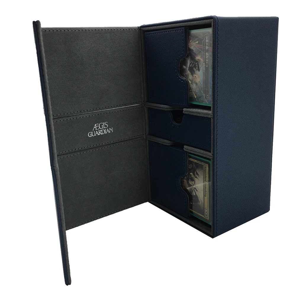 ▶Размер: прибл. 200x90x113 мм ▶Вмещает до 200 карт с двумя рукавами или 240 карт с одним рукавом, стандартный размер ▶Съемный лоток для карт и кости/лоток для аксессуаров, независимый доступ к картам и аксессуарам ▶5 магнитов для очень сильного закрытия ▶Инновационный материал с противоскользящей текстурой с высококлассным внутренним материалом из микрофибры, ПВХ и без кислоты