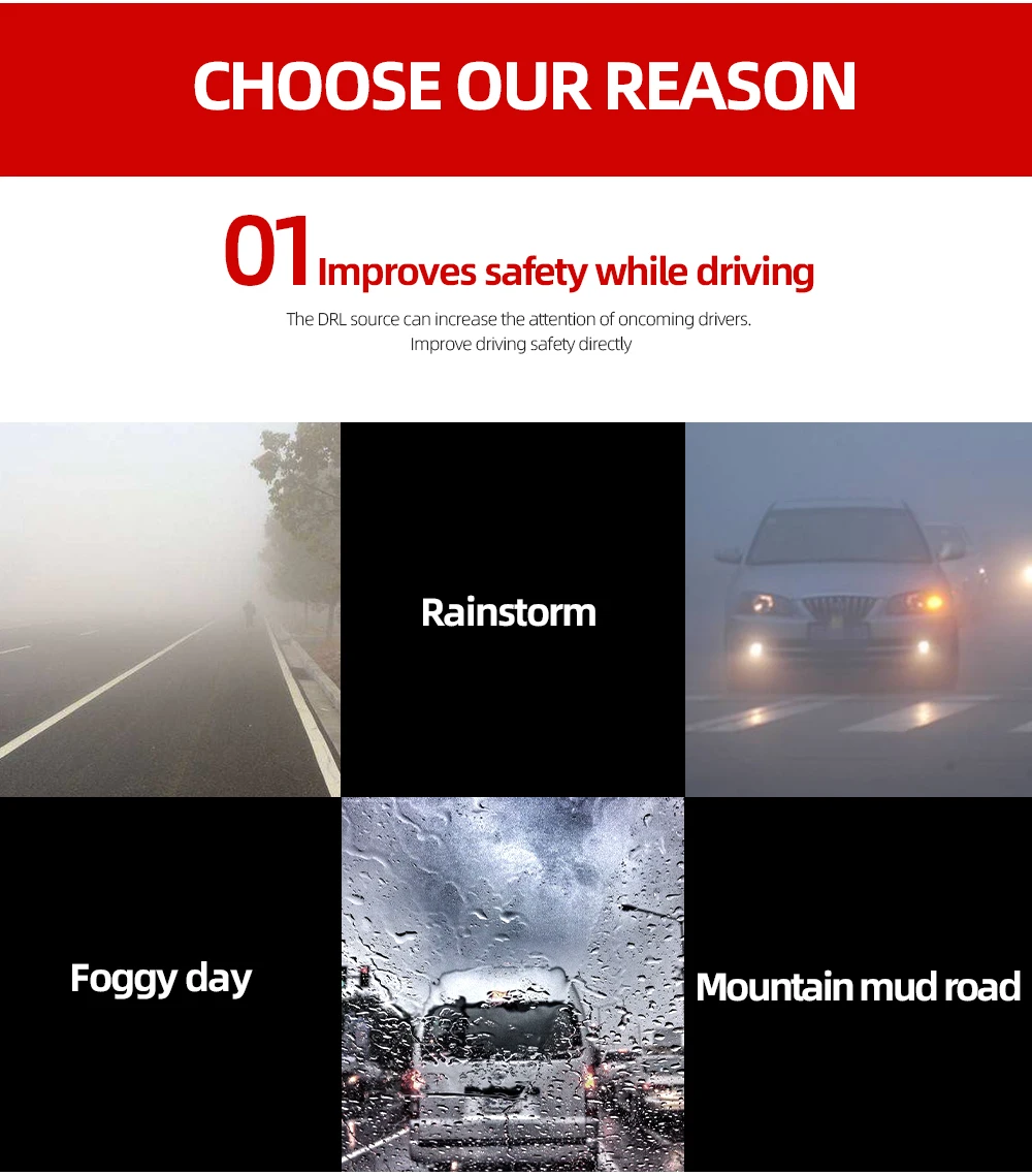 High quality Daytime Running Light with no pollution, no noise, no electronic interference.