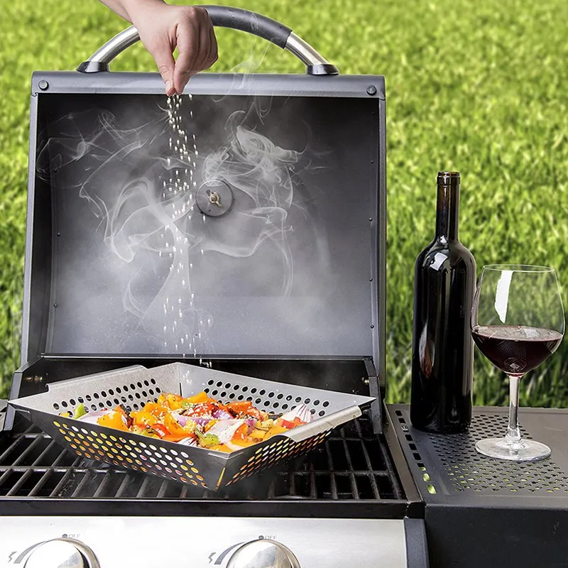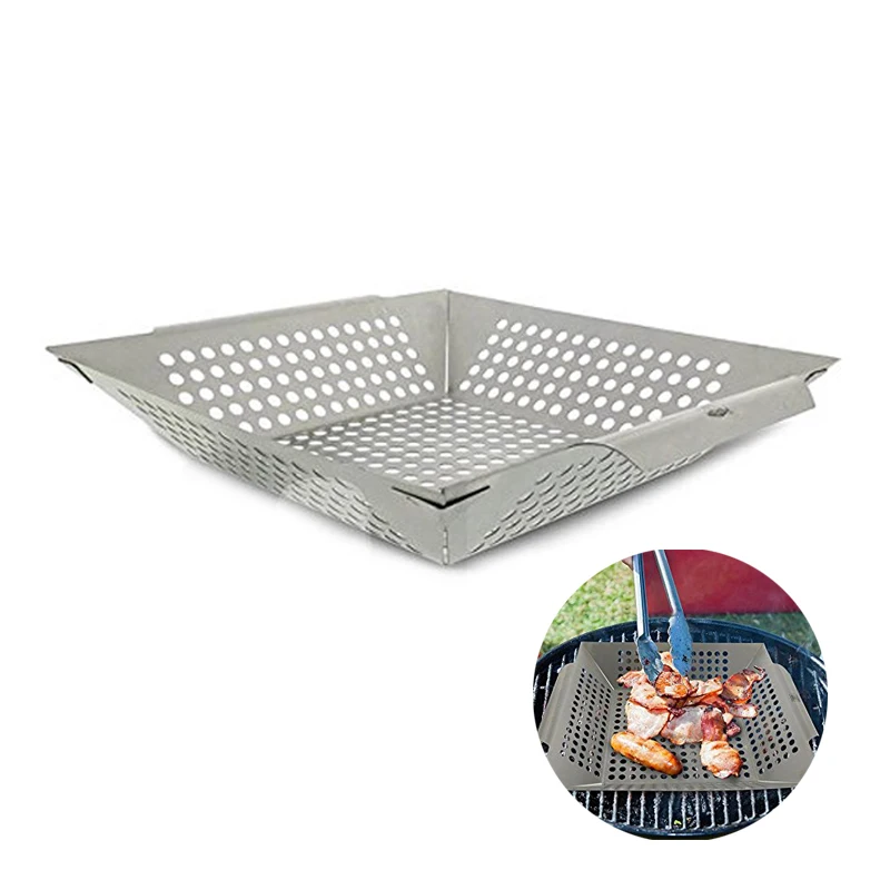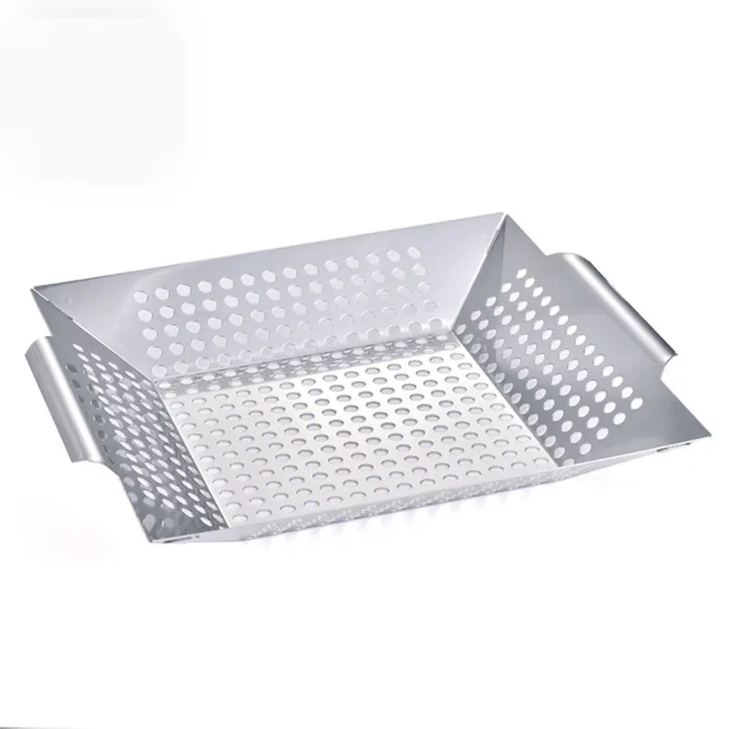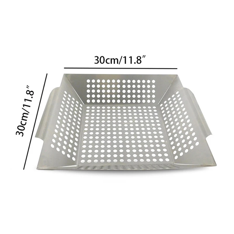 Корзина для гриля из нержавеющей стали, тарелка для барбекю, антипригарная сковорода для выпечки, квадратный лоток для овощей, мяса, фруктов, гриля, принадлежности для барбекю 30 см