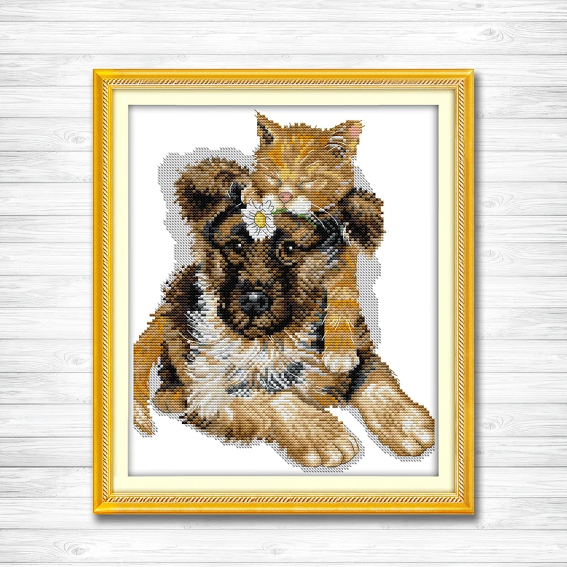 Lean close together dog kiss шаблон для домашнего декора Печать на холсте DMC 11CT 14CT наборы крестиков Набор для рукоделия вышивка