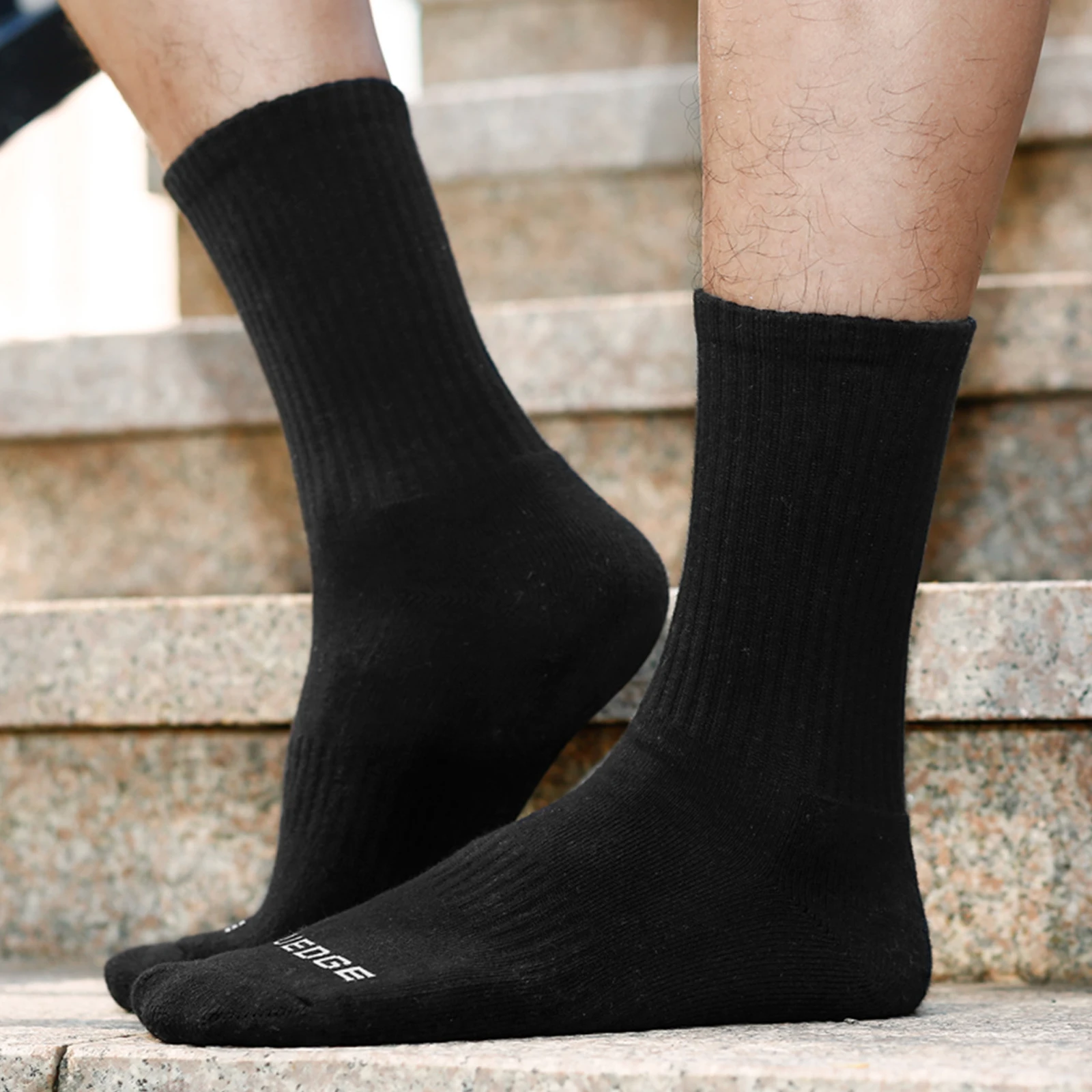 YUEDGE/6 пар в упаковке, мужские мягкие дышащие носки до середины голени из чесаного хлопка, удобные повседневные спортивные носки для тренировок, бега, черные носки, белые носки для мужчин, размер 37-46