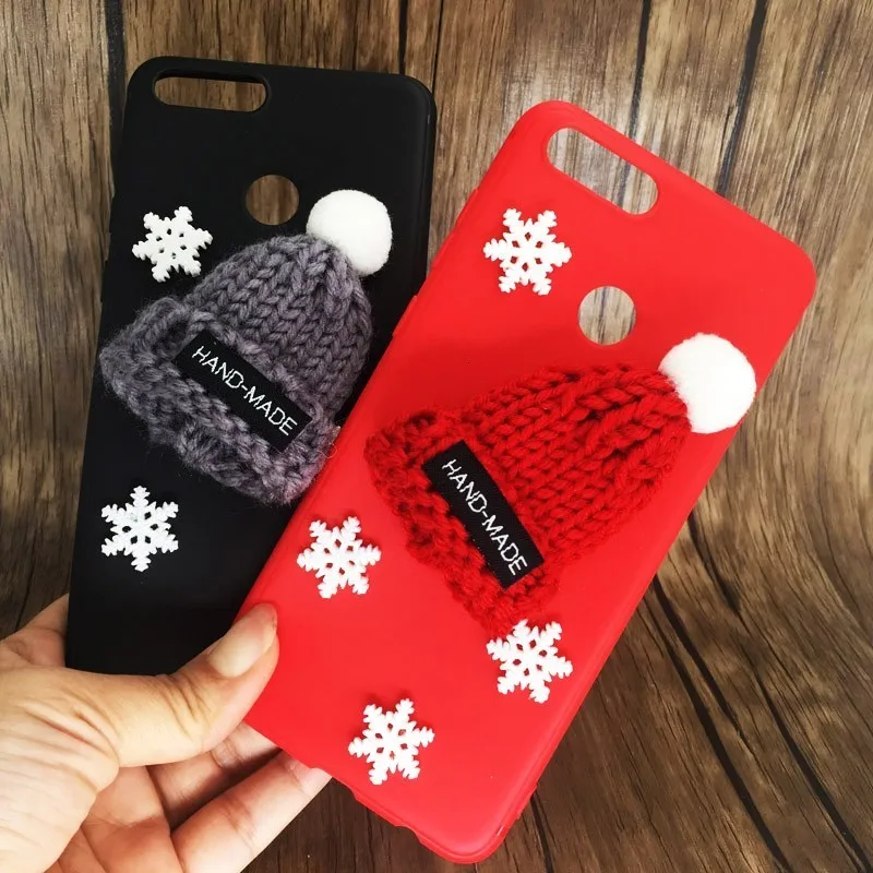 Christmas Hat Fluffy Case For Huawei Honor 7X 7 X Honor9 9 lite 10 Lovely Silicone Phone Cases On Huawei P Smart Cover Coque