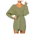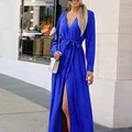 Женское длинное платье с разрезом, повседневное свободное пляжное платье-рубашка в стиле бохо с V-образным вырезом, поясом и длинным рукавом, осень 201811,77 долларов США/Шт.