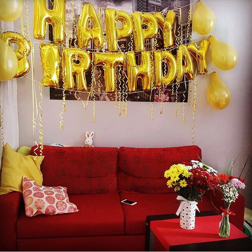 13pcs Gold English Alphabet Balloon Set Happy Birthday Party Wedding Birthday Party Decorations Kids Letter Birthday Balloons