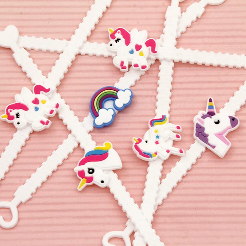 12 шт./лот Единорог вечерние резиновый браслетUS $3,27