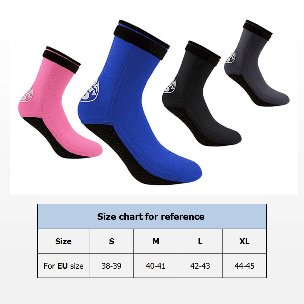 Противоскользящие зерна на дне увеличивают трение, предотвращают скольжение. 3 мм Улучшенный неопрен с тонкой закаткой защищает ногу от камней или камней, сохраняя тепло в воде, и эластичные манжеты с крепежной лентой предотвращают скатывание носков во время водных видов спорта, отличные пляжные ботиночки для мужчин и женщин. Особенности:Размер (европейский размер обуви): S: 38 - 39 / M: 40 - 41 / L: 42 - 43 / XL: 44 - 45.3 мм Премиум мягкий неопрен для максимального комфорта и тепла.Регулируемая крепежная лента предотвращает скатывание и обеспечивает надлежащую герметичность.Плоские Прошитые швы уменьшают натирание.Правильная Толщина С нескользящими зернами внизу предотвращает скольжение и защищает вашу стопу от солнечных ожогов, скал и песка.Идеально подходит для водных видов спорта, таких как дайвинг, Сноркелинг и прогулки по пляжу, и подходит как для мужчин, так и для женщин. Технические характеристики:Материал: неопренЦвет: розовый/серый/синий (на выбор)Размер: S / M / L / XL (опционально)S: EU 38-39M: ЕС 40-41L: EU 42-43Размер XL: европейский размер 44-45