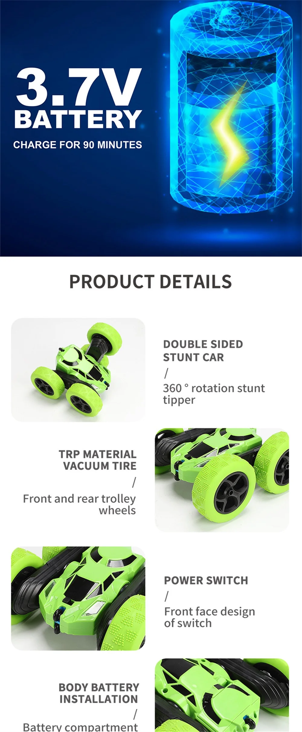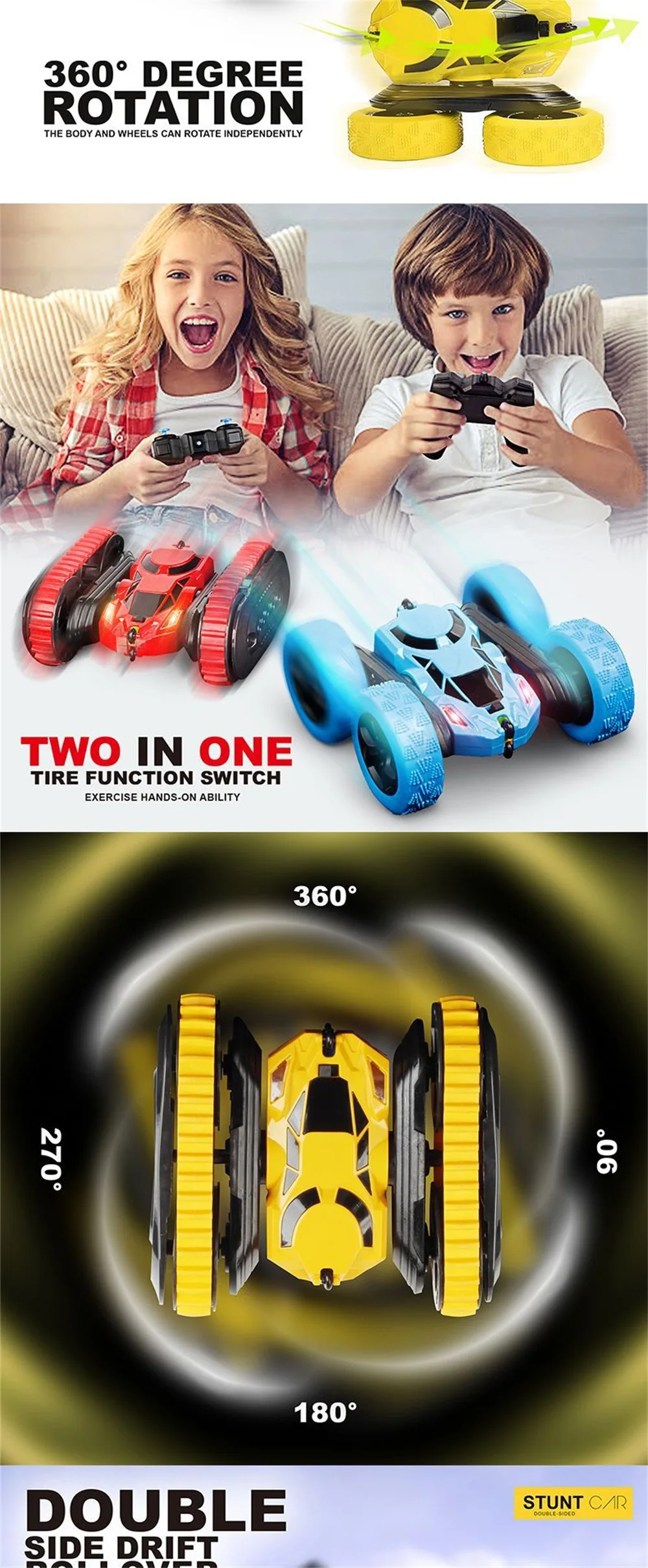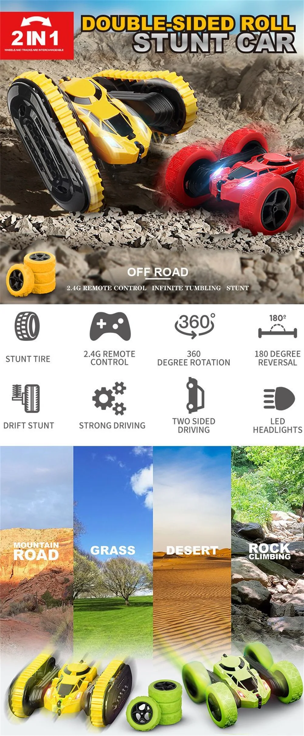 1. Автомобильный пульт изготовлен из высококачественного АБС-пластика, нетоксичного, безвкусного и экологически чистого распылителя. 2. Благодаря уникальному дизайну он выглядит как настоящий гоночный автомобиль. Колесо изготовлено из резины, поэтому имеет хорошее сцепление, ударопрочность и долговечность. 3. RC stunt автомобилей принимает 2,4 ГГц с поддержкой технологии несколько высокоскоростных транспортных средств с длинная Дистанция управления и сильная способность анти-помех. 4. Может переключаться между треками танка и колесами, несколько способов воспроизведения Характеристики: Наименование товара: 2-в-1 stunt автомобилей Размер изделия: 16*15*7,5 см Посылка Размер: 24,5*17,5*10,5 см Время зарядки: 1,5 часов Время работы: около 20 минут Пульт дистанционного управления батареи: 2*1,5 V AA батарея Автомобильный аккумулятор: 1*14500 3,7 V