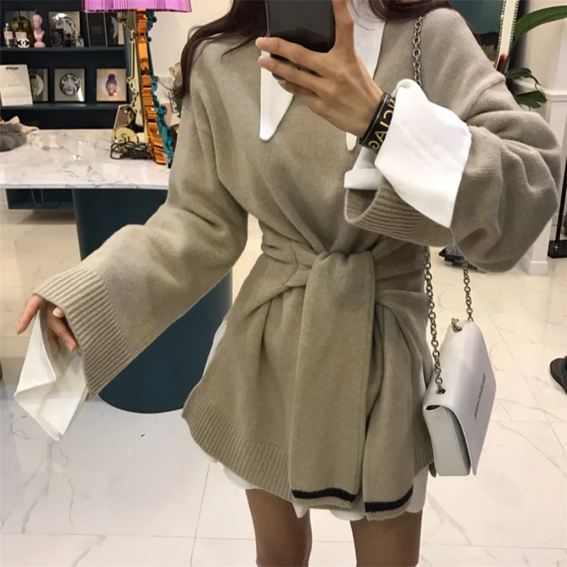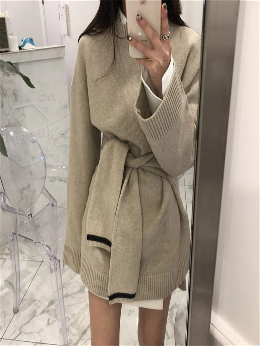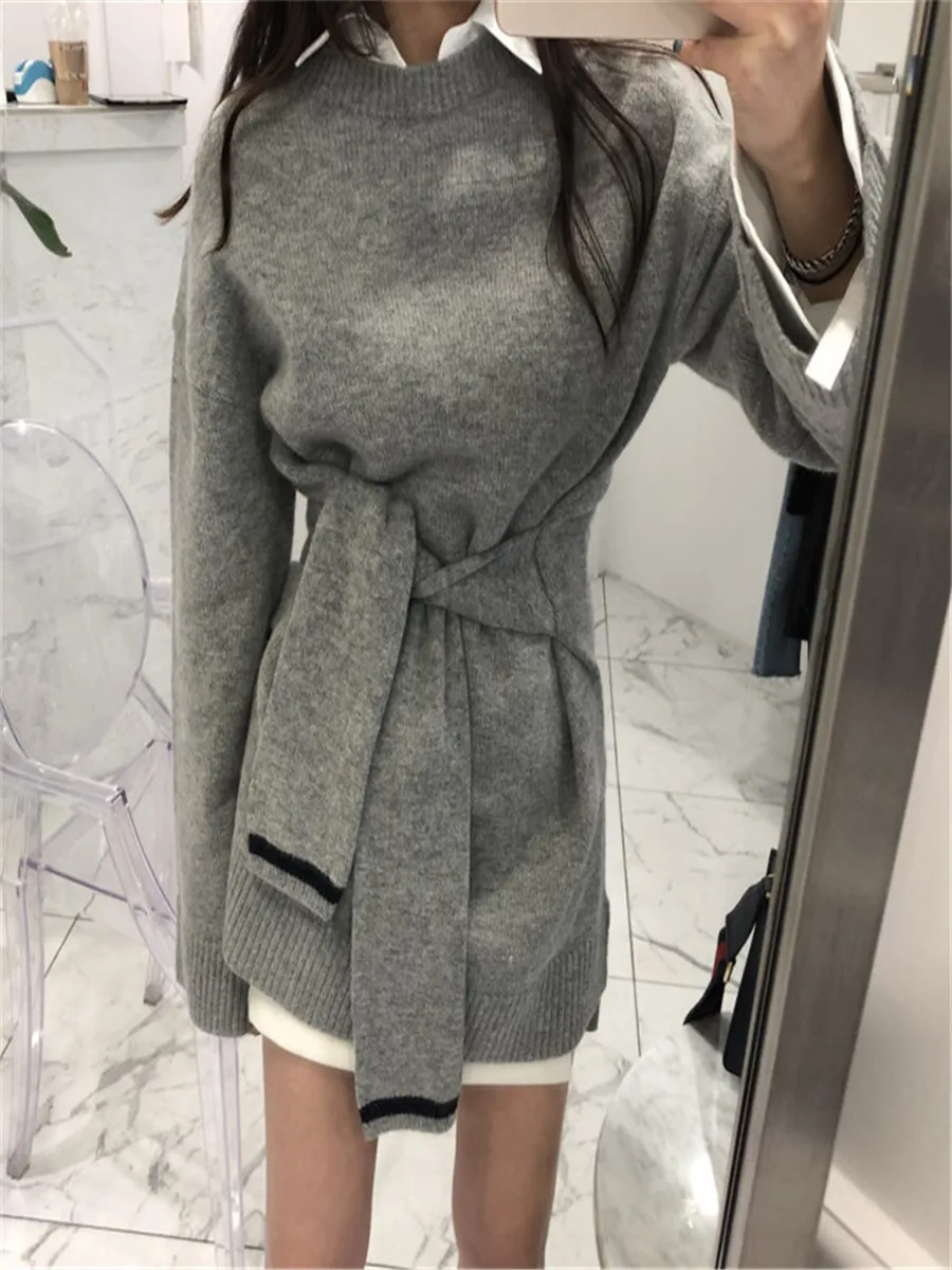 Женский Трикотажный Свитер оверсайз винтажный базовый Вязаный топ с заниженной