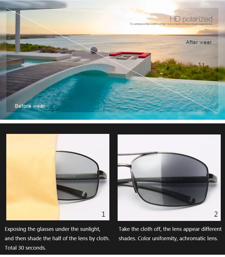 Фотохромные поляризационные Квадратные Солнцезащитные очки Мужские брендовые винтажные UV400 тени для вождения солнцезащитные очки металлическая оправа украшение Oculos HN1168