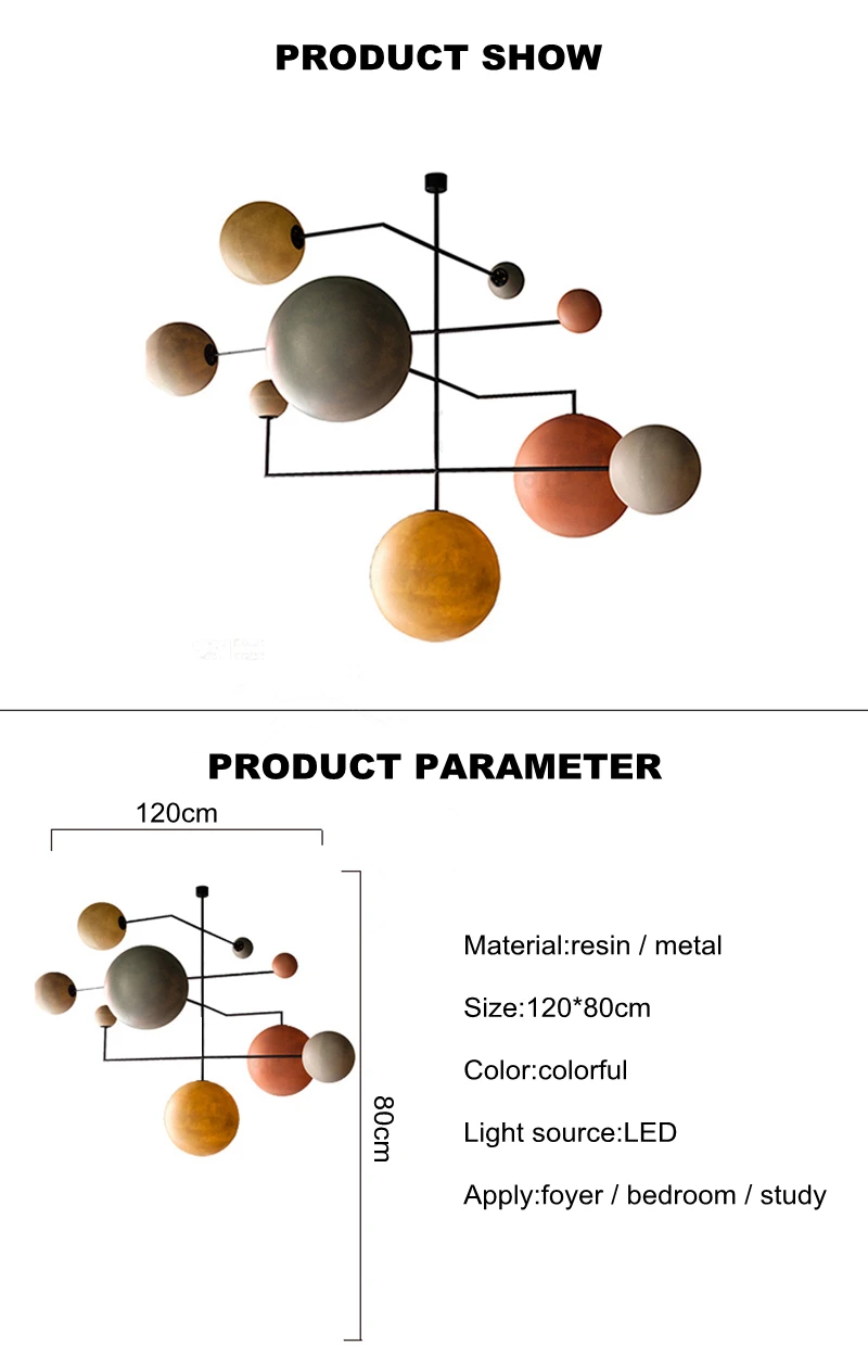 Новое поступление, скандинавский пост, современные цвета, полимерный круглый шар, комбо, подвесные светильники, креативные, для гостиной, спальни, роскошные, LED Droplight Спецификация Современный подвесной светильник Размер света: 9 ламп диаметром 120 см х 80 см Источник света: высокая яркость led доска теплый белый 3000 K, чистый белый 6000 K, AC90-260V вход Материал: металл/смола Цвет корпуса: разноцветный шарик из смолы Применение: Отель, зал Чайный домик чайный бар Домашний декор осветительный прибор для гостиной паба Упаковка включает: 1 шт. современный простой подвесной светильник