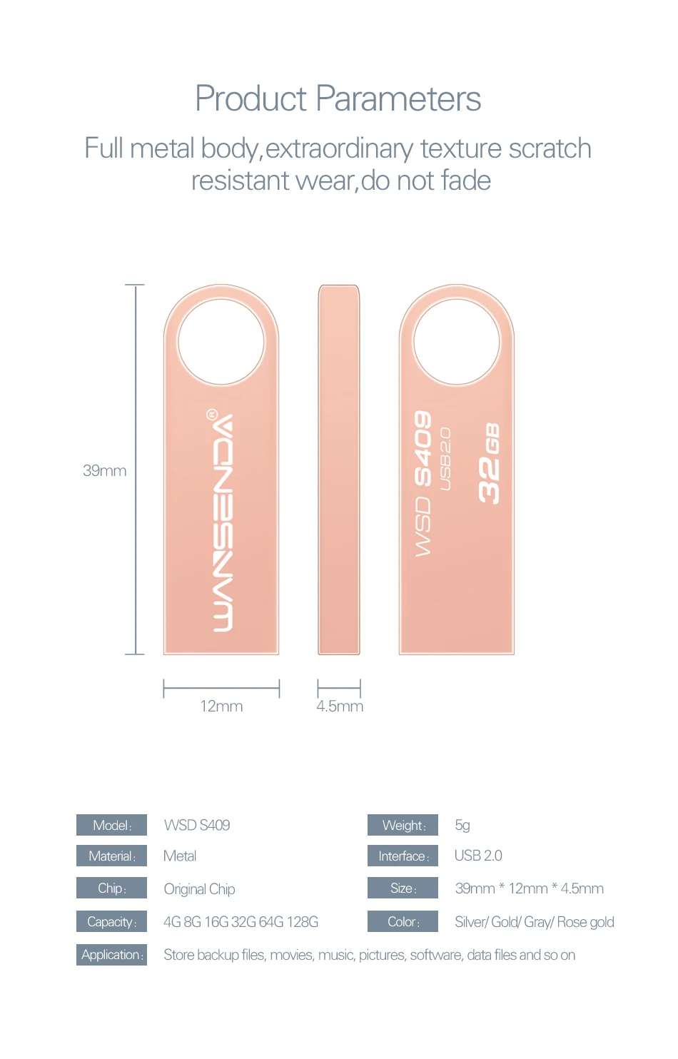 4. Емкость: 4 ГБ/8 ГБ/16 ГБ/32 ГБ/64 Гб/128 ГБ.