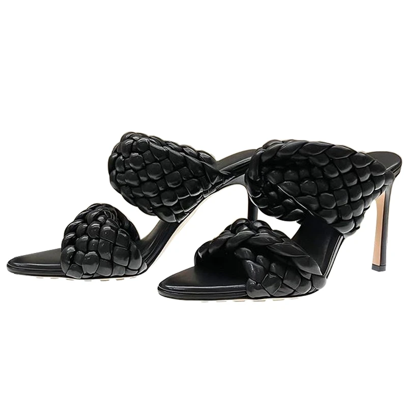 Европейские Подиумные шлепанцы; Босоножки с открытым носком на высоком каблуке; Модная обувь; Тканая удобная обувь