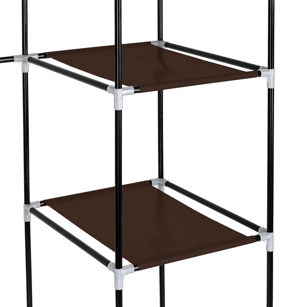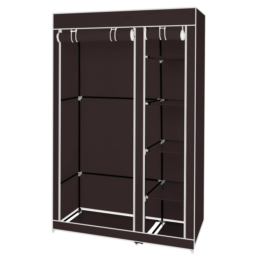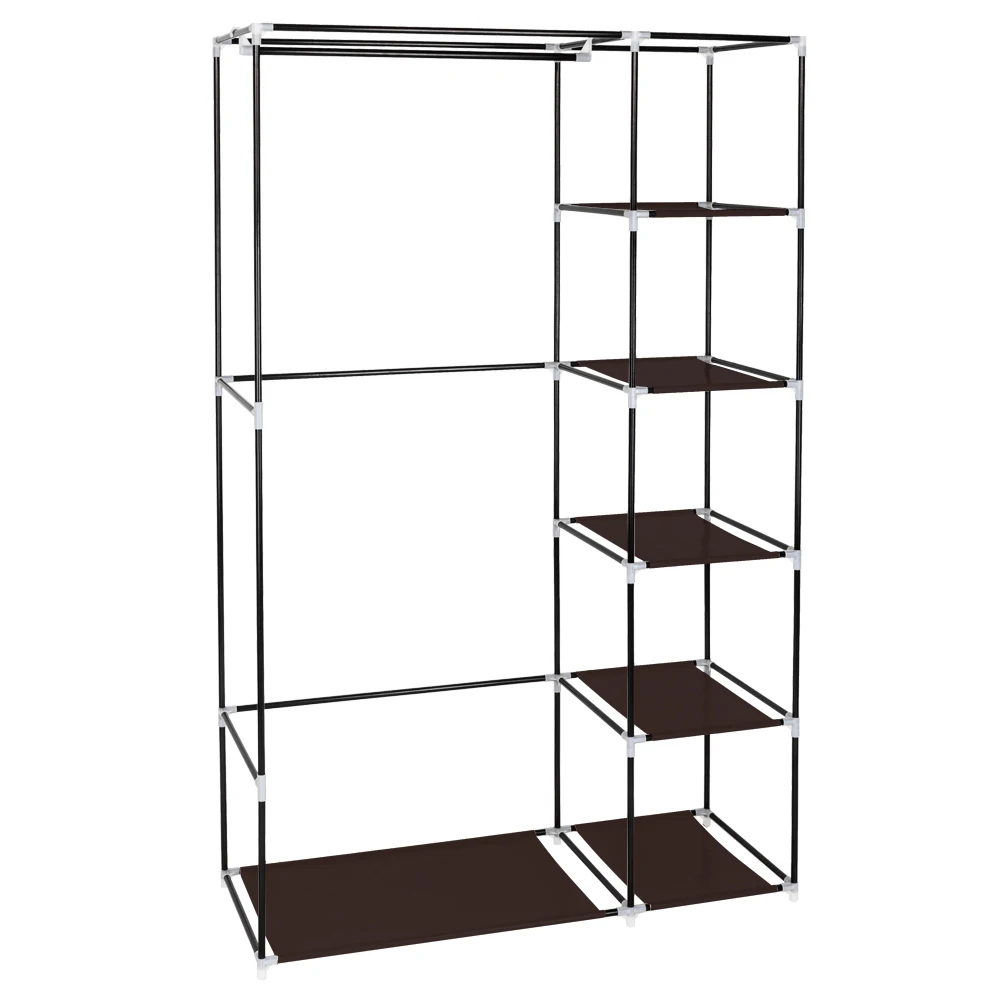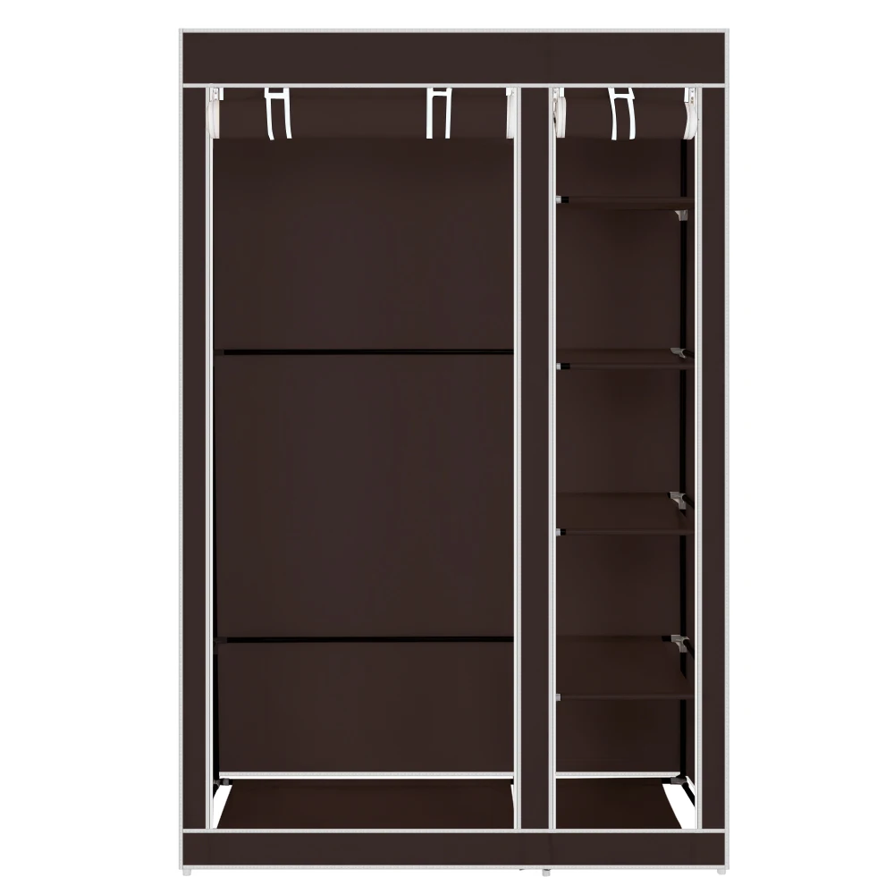 67" Portable Wardrobe Closet Dark Brown Fabric Folding Closet Bedroom Storage Cabinet 110*45*175CM