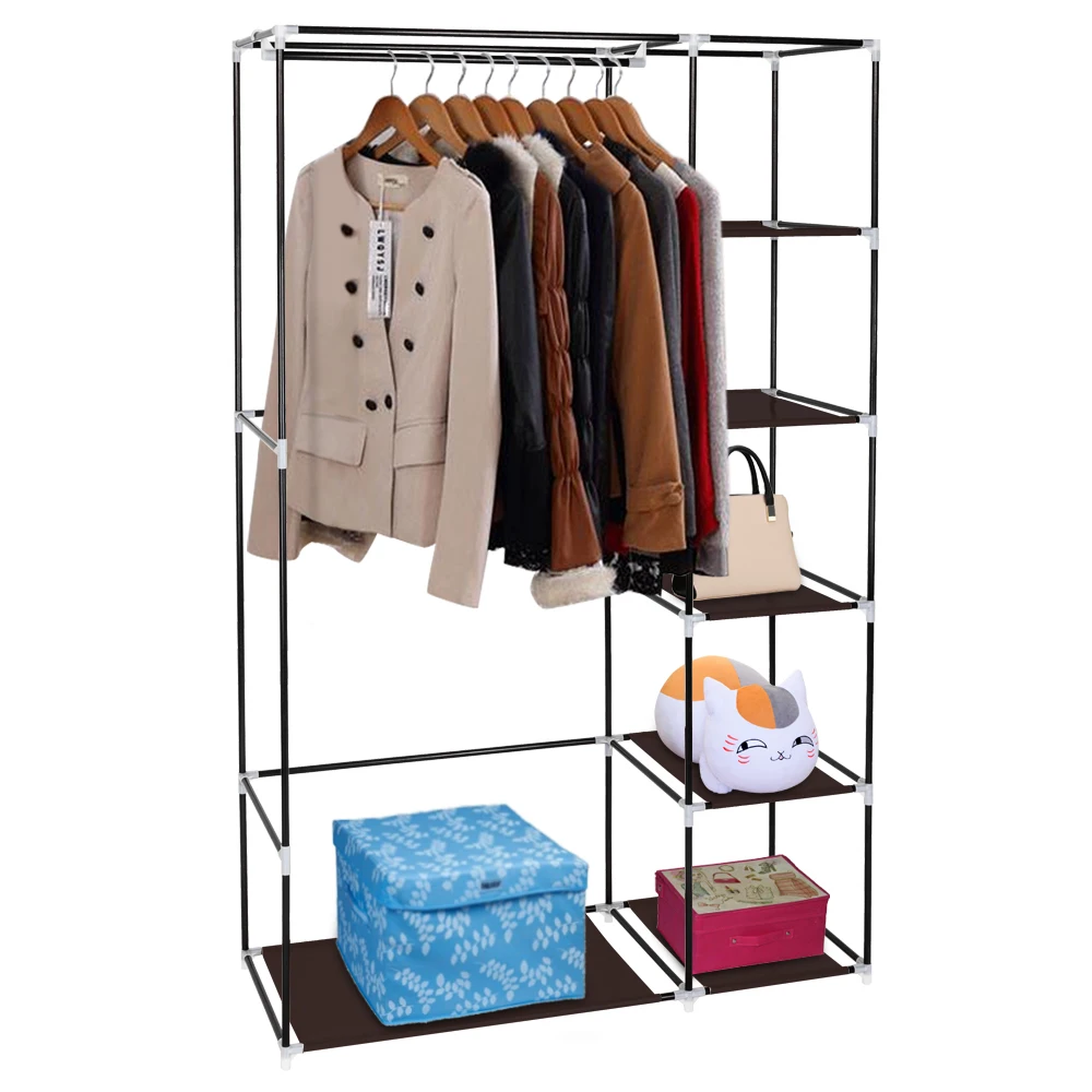 Our 67" Portable Closet Storage Organizer Clothes Wardrobe is Made from Selected Non-Woven Fabric Cover, High Quality Steel Tube and PP Plastic Connectors, Which Will Durable and Meet Your Long Term Storage Needs. The Size for The Clothes Wardrobe Makes it Suitable for Organizing Your Small Rooms and Walk-In Closet. Movable Improved Clothes Hanging Rod and 6 Storage Shelves Offers You Enough Space Both for Your Longer Outfits and Folded Clothes. Zippered Dustproof Cover Offered to Keep Your Item Away from Dust and Water-Proof Fabric Tiers are Easy to Clean. It Will Be Great Convenient and Functional. Do Not Hesitate to Buy One!
