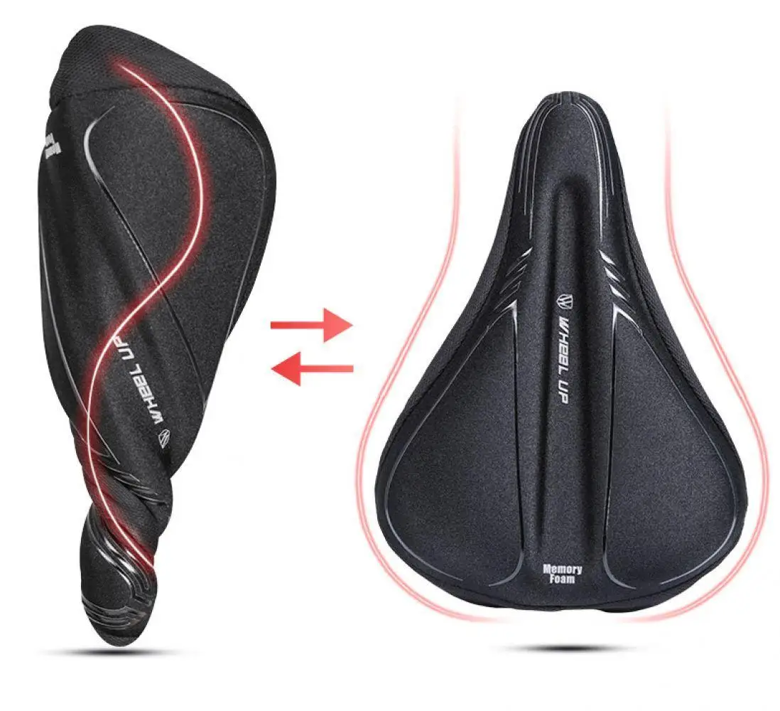 Brand:WHEEL UP Product Name:WHEEL UP Elastic Shockproof Bicycle Saddle cover Material:Lycra,SBR,Memory sponge,PVC Feature: 1.Made of silicone,lycra fiber and memory sponge to keep your hip soft when you cycling. 2.High elastic silicone,comfortable and soft. 3.Anti-slip bottom design. 4.Air circulation,breathable lycra groove design. 5.Size fits for all kinds of bikes.