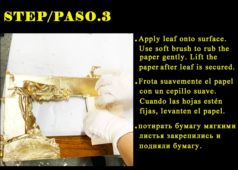 4. С помощью сухой мягкой щетки Разгладьте металлический лист, пока он не прилипнет к поверхности и все лишние металлические листы не будут Удален.