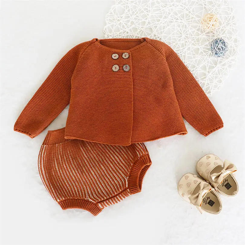 Комплекты одежды для малышей осенний однотонный вязаный костюм для мальчиков и девочек шерстяной вязаный кардиган + шорты верхняя одежда из 2 предметов для малышей