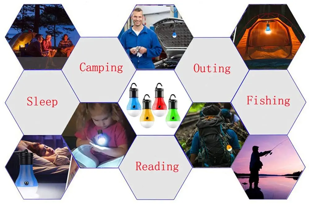Этот кемпинг фонарь питается от 3 секции батареи AAA и наполняет ваш тент с мягкими, диффузный светильник с 3 энергосбережения мяч светодиодный ламп. Светильник для кемпинга с крючком, который можно повесить в палатке или на ветках. Это хороший светильник для кемпинга на открытом воздухе в ночное время.
