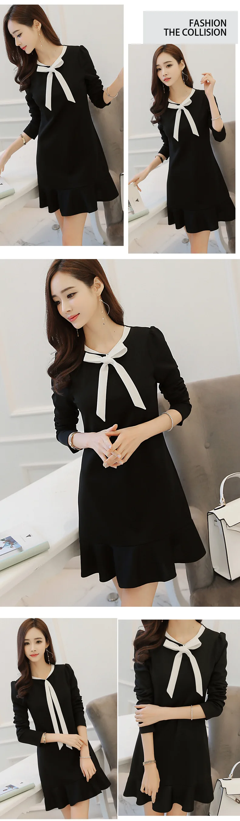 Женское платье 2019 Весна Осень Модное женское черное элегантное с длинным рукавом эластичное тонкое ТРАПЕЦИЕВИДНОЕ ПЛАТЬЕ повседневное мини платье офисное женское