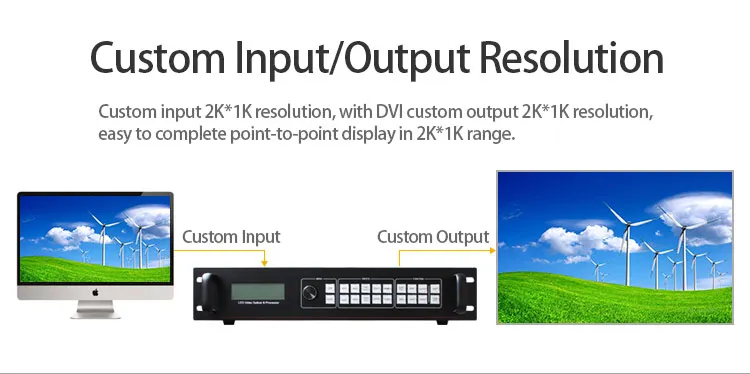 Светодиодный комбинированный процессор имеет три мощных ядра для обработки видео, мульти-Графический мульти-вход Умный комбинированный процессор, который может быть широко использован в выполнении художественной деятельности, командной и контрольной Центра, видеоконференции, отелей, кортов и конференц-залов. В светодиодный сращивания процессора имеет 3-канальный выход, 2-х канальный для сплайсинга, 1 канал для контроля. Может достигать 2 × 1 или 1 × 2 канальный Гибридный с соединением внакрой, одно изделие может соединить 5,3 миллионов пикселей Пользовательский выход.
