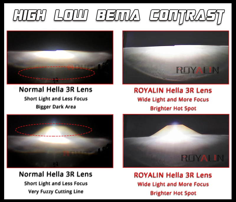 1. 100000+ customers around the world use ROYALIN headlight lens. 2. 98%+ GOOD feedback with true photos from our clients. 3. 24 months warranty for ROYALIN projector lens. 4. VIP after-sale service team for you 5.ROYALIN Bixenon K.O. Your Halogen Light! Refuse? Take one and Let us fight.