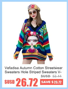 Vefadisa Mixed Color Geometric Pattern Sweater Women Short Sweater O-Neck Pullover Sweater Lantern Sleeve Jumper Tops ZLD438