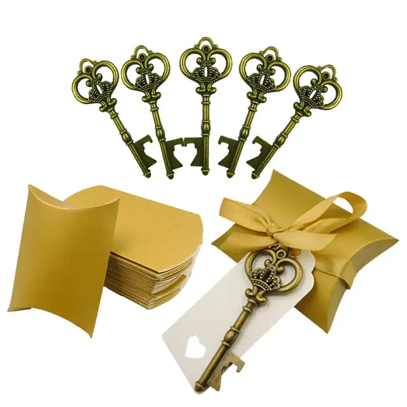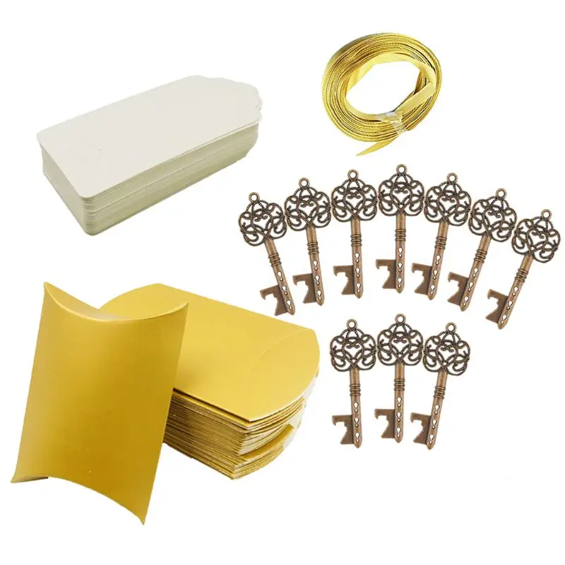 Это ключ формы открывалка для бутылок с бумажная бирка и конфетная сумка на цепочка для ключей, Винтажный дизайн, особенным и красивым.