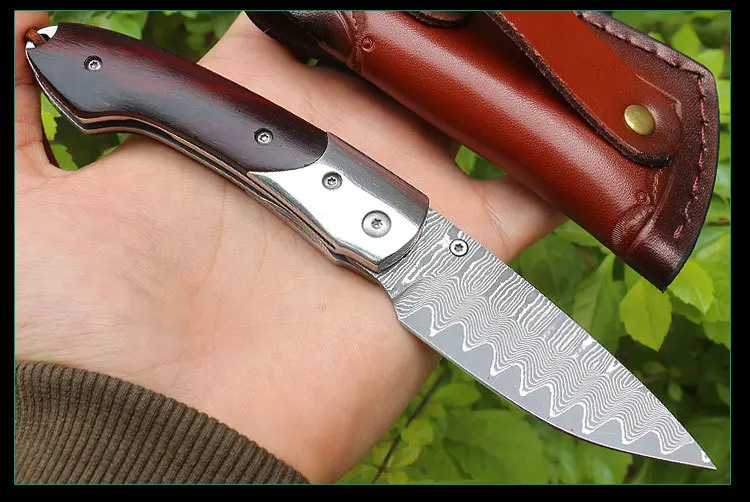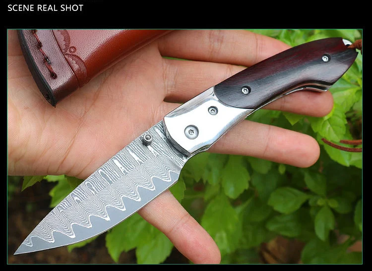 Новый продукт, острый нож, дамасская сталь, складной нож, деревянная ручка, открытый инструмент для самозащиты, походный карманный нож для самозащиты