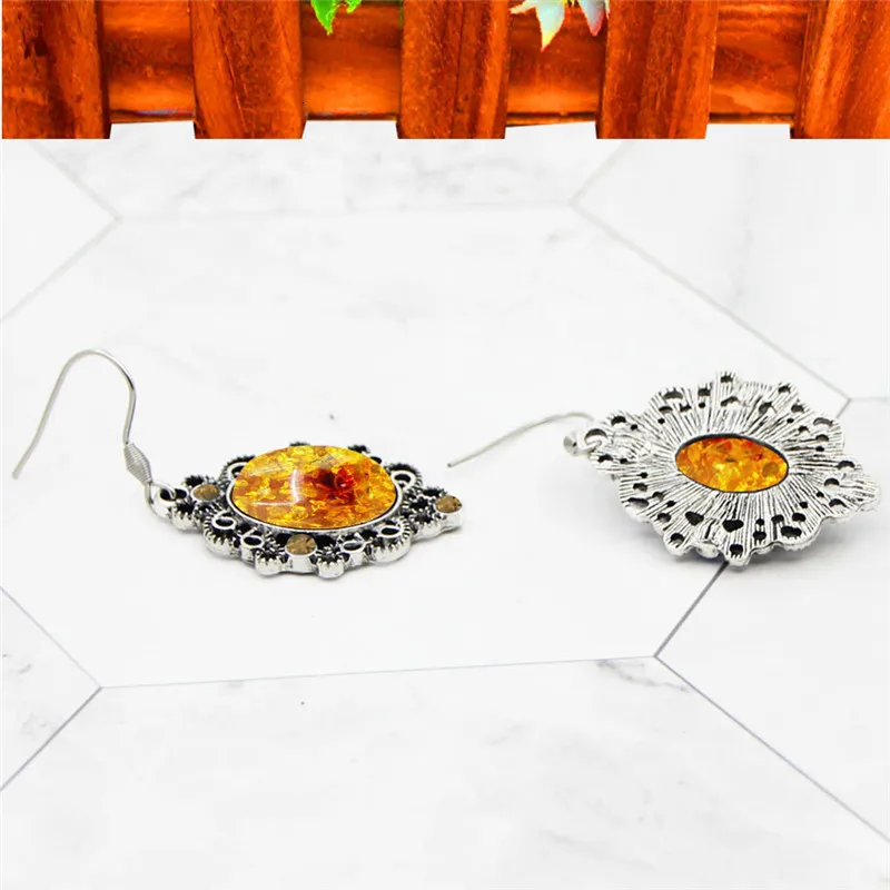 Материал: имитация янтаря и воска, хрусталь, серьги из нержавеющей стали,