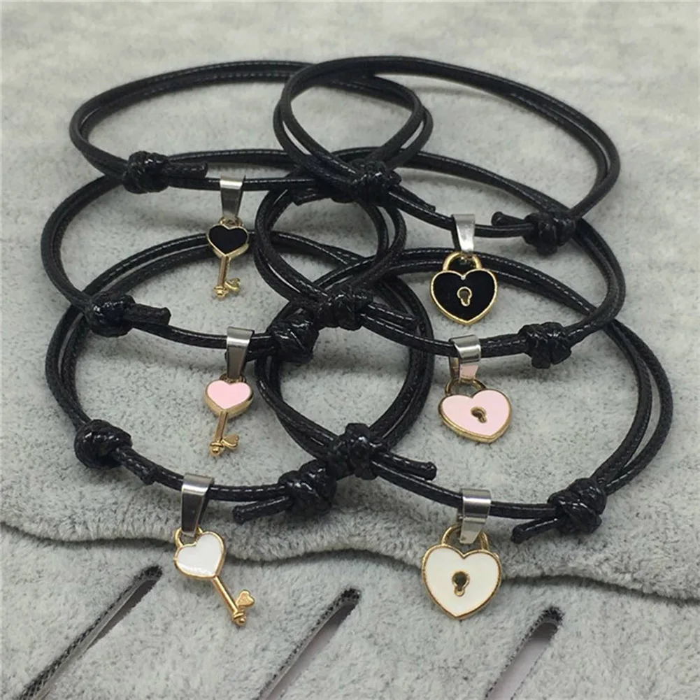 2 шт./лотКEy браслет с подвеской в виде сердцаЖенщинаЮвелирные изделия Веревка браслет влюбленных подарок