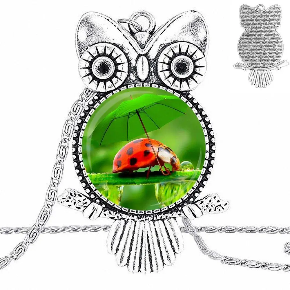 Винтажное ювелирное изделие, стеклянный кабошон, колье с подвеской, длинная сова, ожерелье для женщин и девочек, ручная работа, жук, животное, дизайн, насекомое, логотип