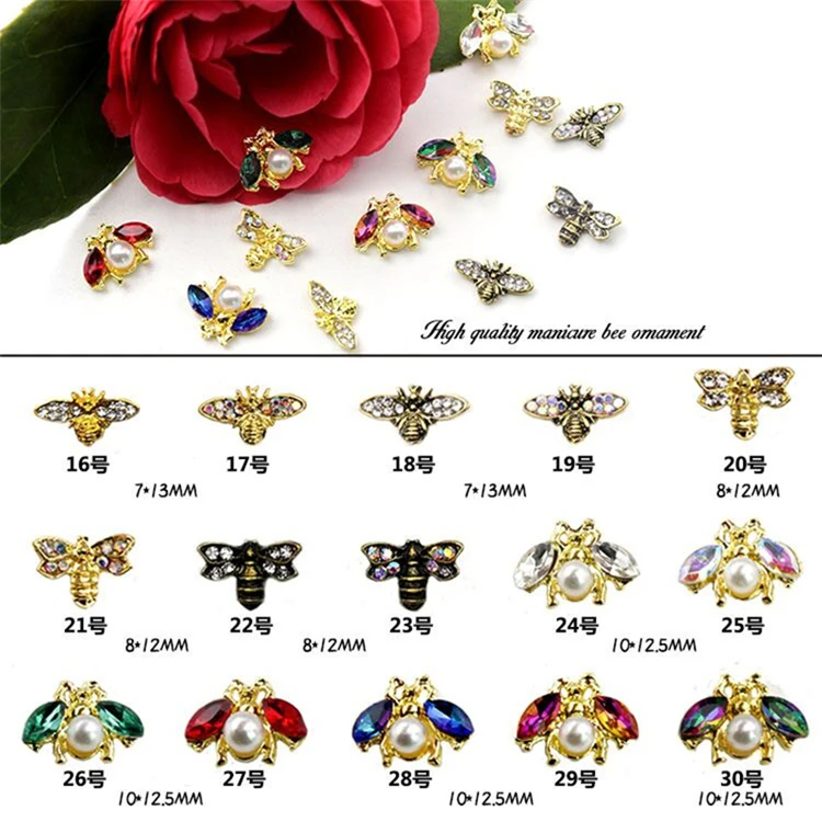 5 шт./упак. металлического сплава пчелы дизайн 3D нейл-арта украшения золотого, серебряного, черного цвета ювелирные изделия из драгоценных камней, 15 видов стилей Маникюр Аксессуары для телефонов