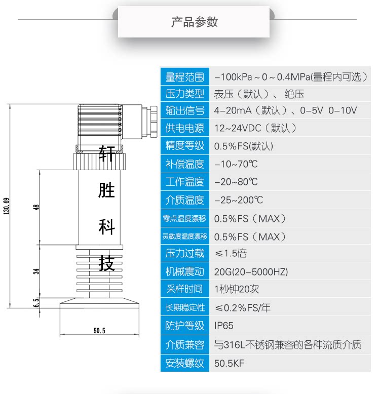 1: Импортные Диффузный кремний Чип, Вся нержавеющая сталь Корпус 304